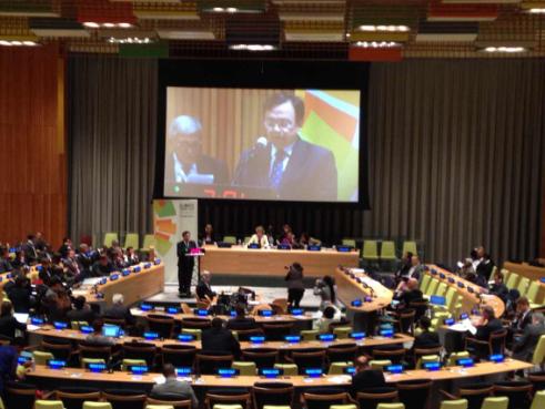 当地时间9月23日,被称为“史上空前”规模的2014年联合国气候峰会在纽约联合国总部隆重举行,来自全球120多个国家的元首和政府首脑齐聚一堂,共同商讨全球气候变化问题,为人类气候变化奋力一搏。美国总统奥巴马,法国总统奥朗德,韩国总统朴瑾惠,英国首相卡梅伦等也纷纷出席。应联合国秘书长潘基文的亲自邀请,比亚迪股份有限公司董事长兼总裁王传福,作为全球唯一一个被邀请的汽车企业代表,出席此次盛会并发表主题演讲,向全球展示用以解决能源问题,环境污染,实现可持续发展的比亚迪三大绿色梦想。