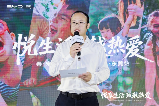 随着活力十足的暖场表演落幕,比亚迪王朝网东莞大区运营经理登台致辞,向到场嘉宾表达诚挚感谢:“秦与宋作为王朝家族的销量担当,累计收获数百万家庭信赖,此次2026款车型焕新,正是立足东莞用户通勤与家庭出行需求,以技术进阶传递‘热爱生活’的品牌主张。”致辞引发全场共鸣,将现场期待值推向高潮。